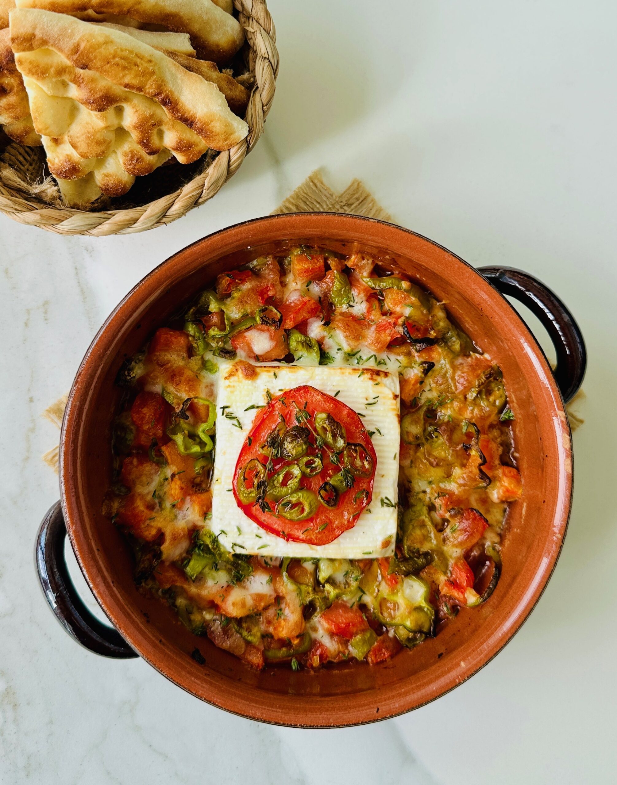 Domatesli, biberli, peynirli ve kekikli pratik lezzeti kahvaltı sofraları için veya meze olarak hazırlayabilirsiniz….