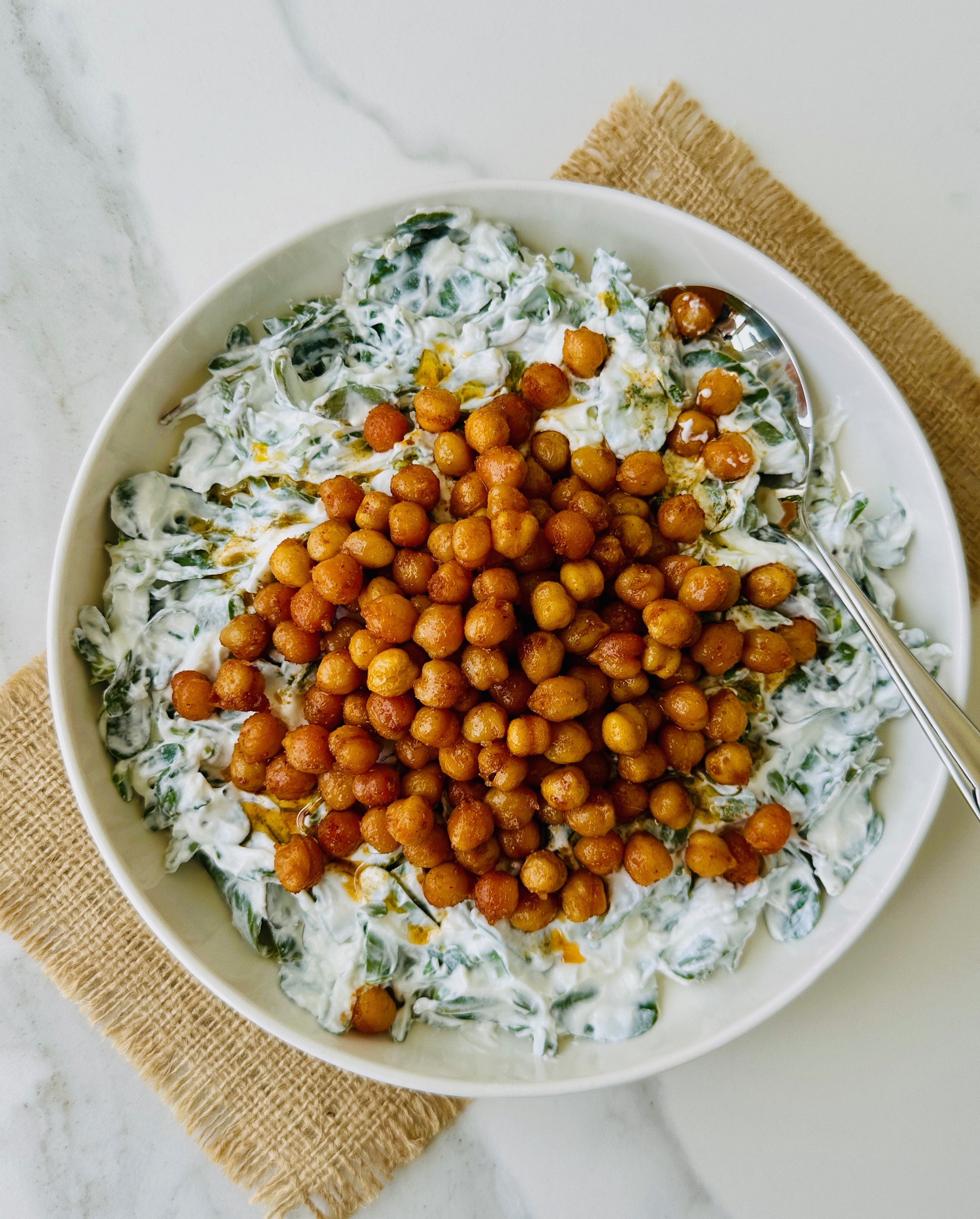 Yaz sofralarına çok yakışan süzme yoğurtlu, çıtır nohutlu salata…