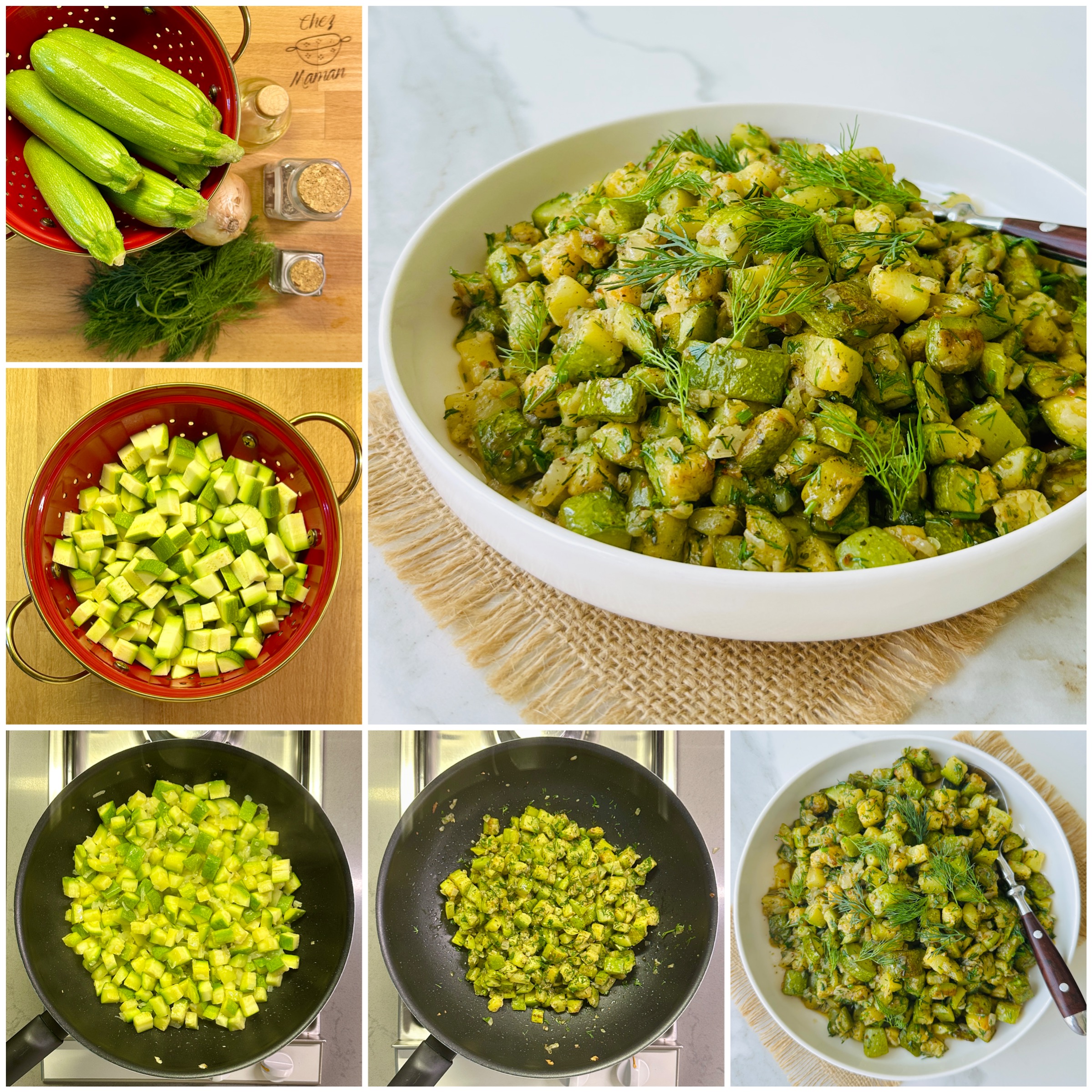 *Büyük bir tavaya zeytinyağı ve kuru soğanı alın, açık ateşte soğanlar yumuşamaya başlayınca doğranmış kabakları ekleyin, açık ateşte ara sıra karıştırarak kavurun, kabaklar kızarmaya başlayınca pul biber, nane ve tuzu ilave edip karıştırarak ocağı kapatın. Doğranmış dereotunu ekleyip karıştırın.