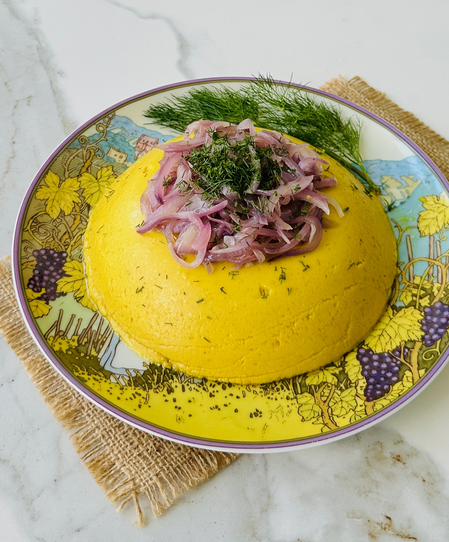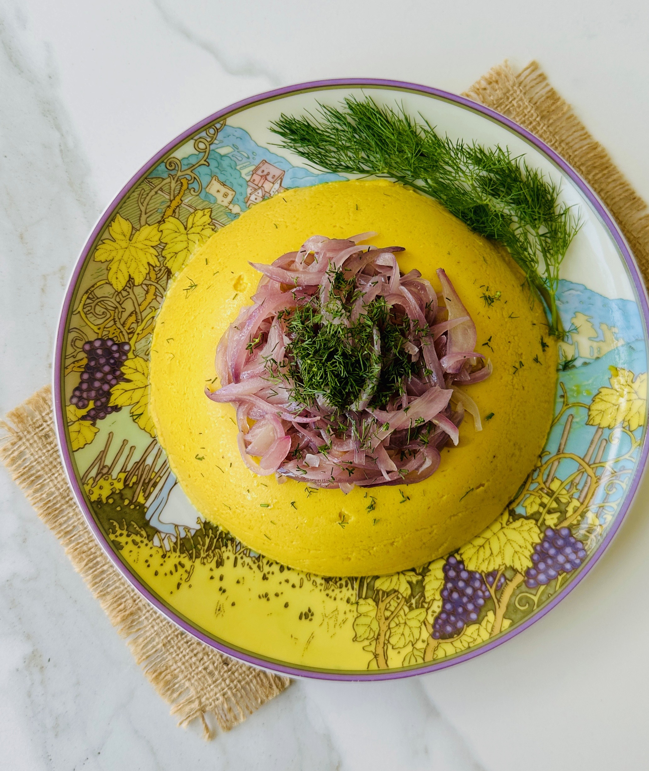 *Mercimekli favayı kaseden düz bir servis tabağına ters çevirerek aktarın, üzerine karamelize soğan ve dereotu serpiştirin.