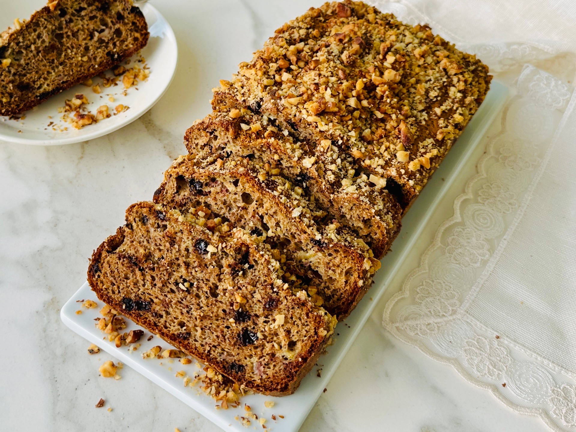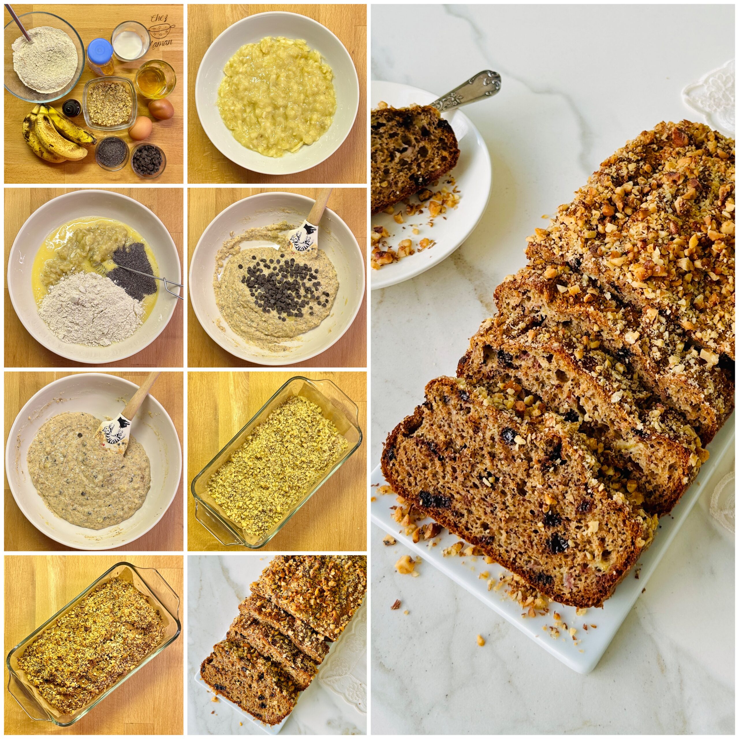 Rafine şekersiz, muzlu, tam buğday unlu, cevizli ve bitter çikolatalı yumuşacık leziz kek…