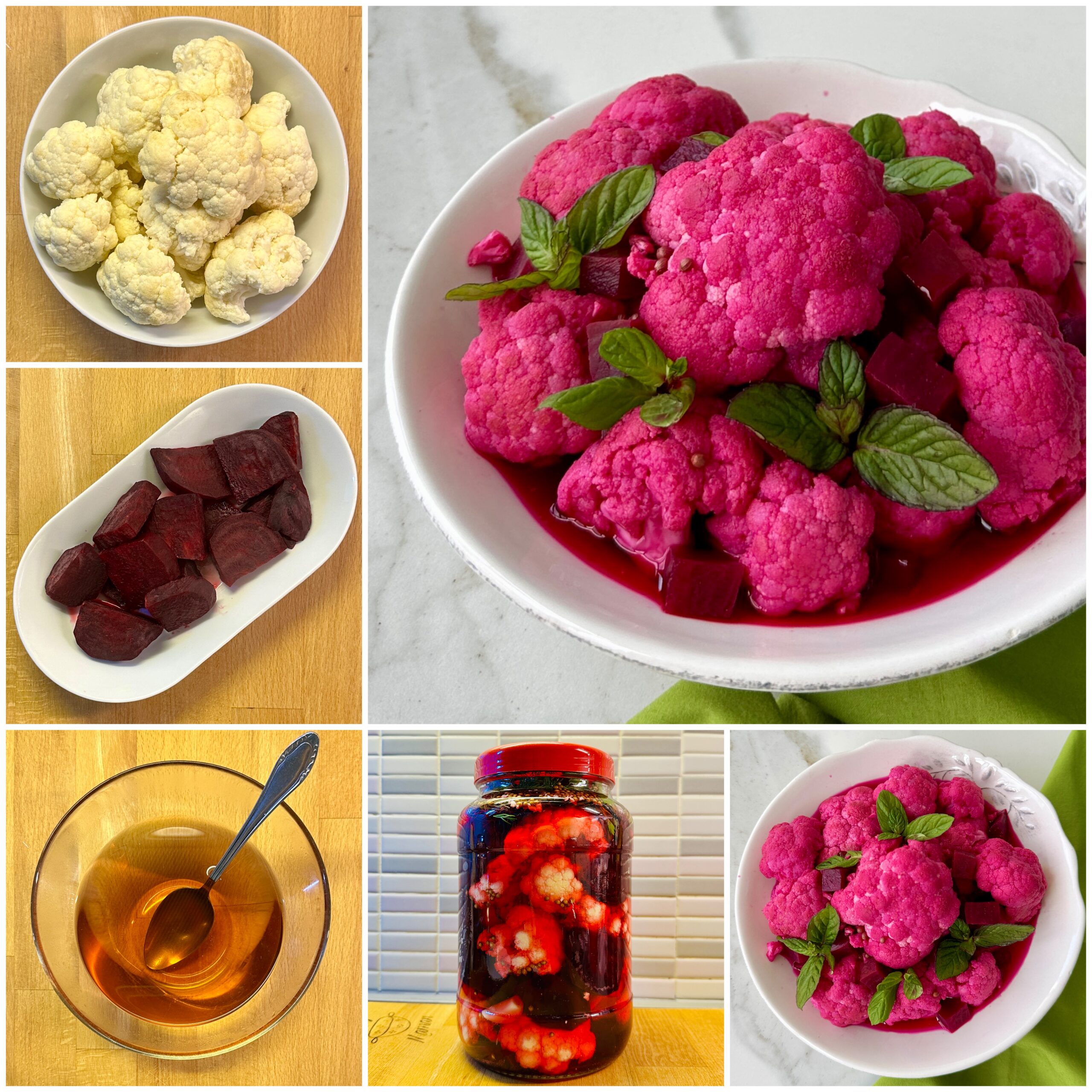 *Karnabaharı minik çiçeklerine ayırıp bol suda yıkayarak süzdürün. Haşlanmış pancarı doğrayın. Kavanoza pancar dilimlerinden bir sıra yerleştirin, üzerlerine karnabahar ve sarımsak ekleyerek sebzeler bitene kadar aynı işleme devam edin.