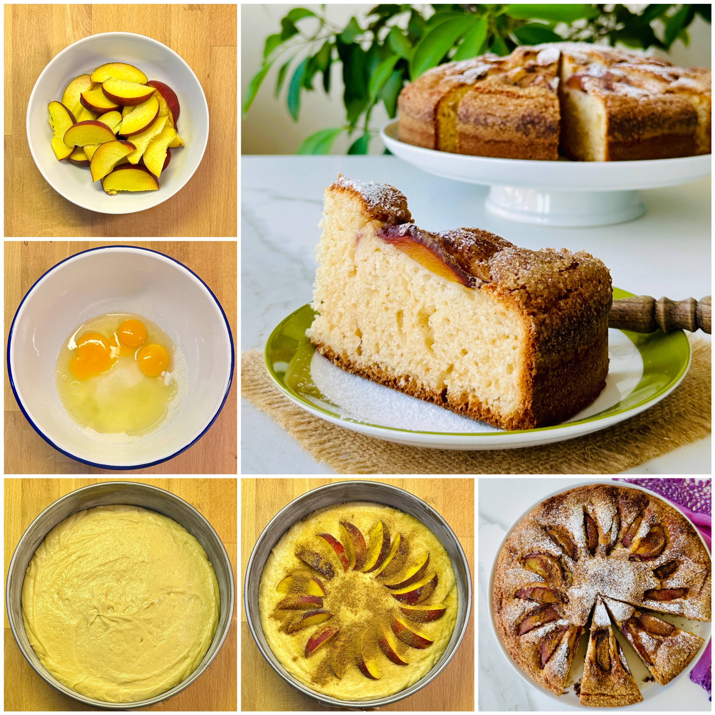 *Kek hamurunu kalıba aktarın, üzerine şeftali dilimleri yerleştirip esmer şeker ve tarçın serpiştirin.
