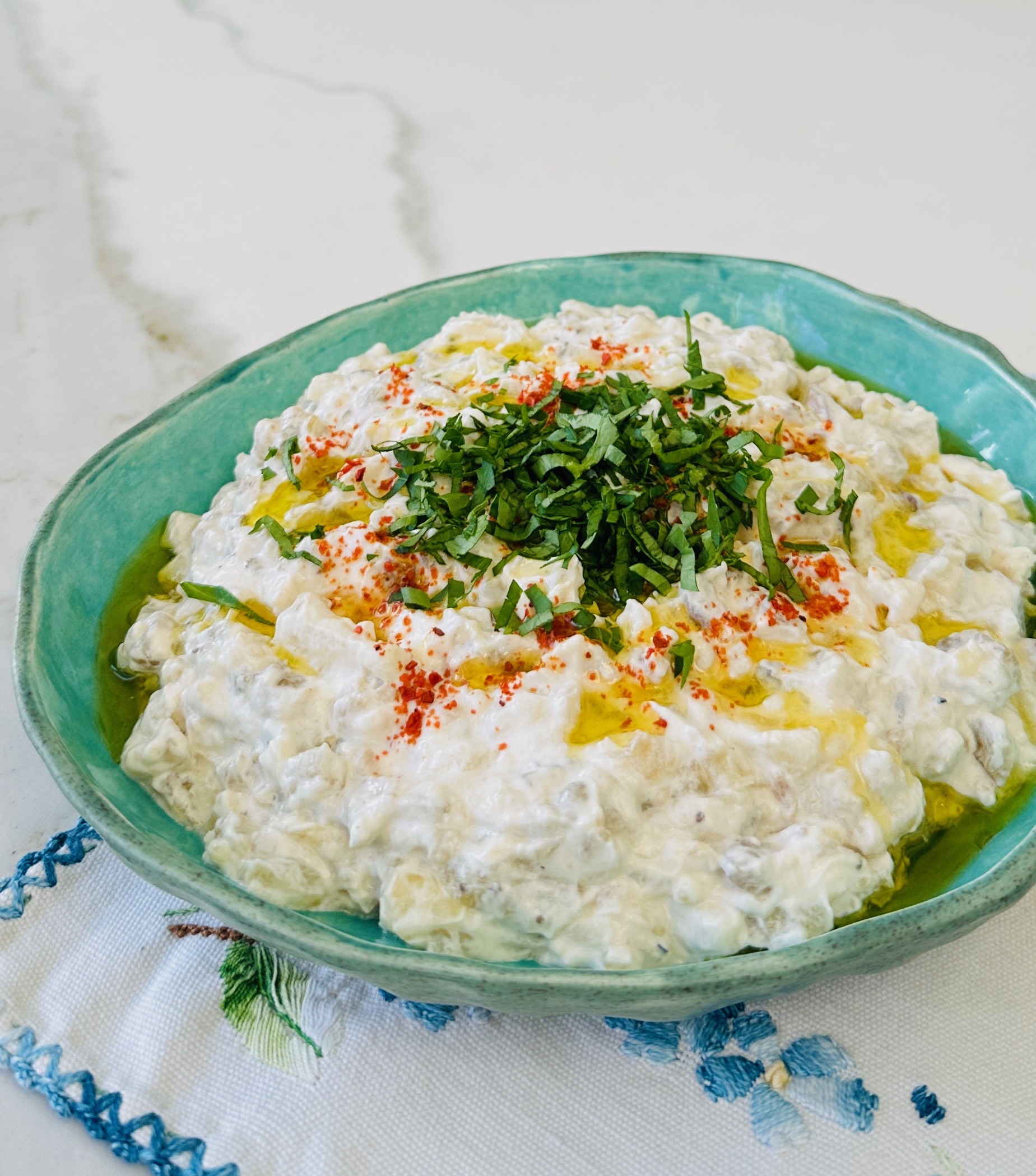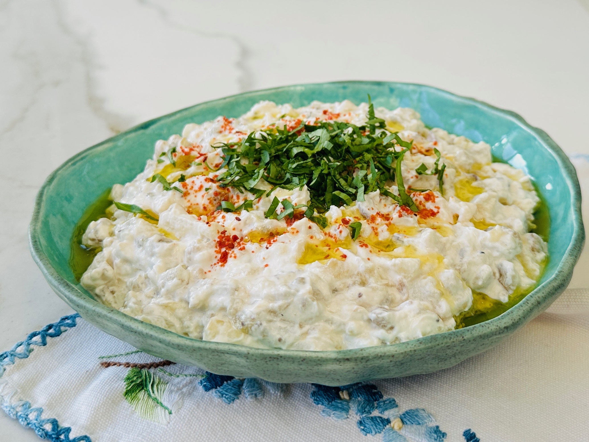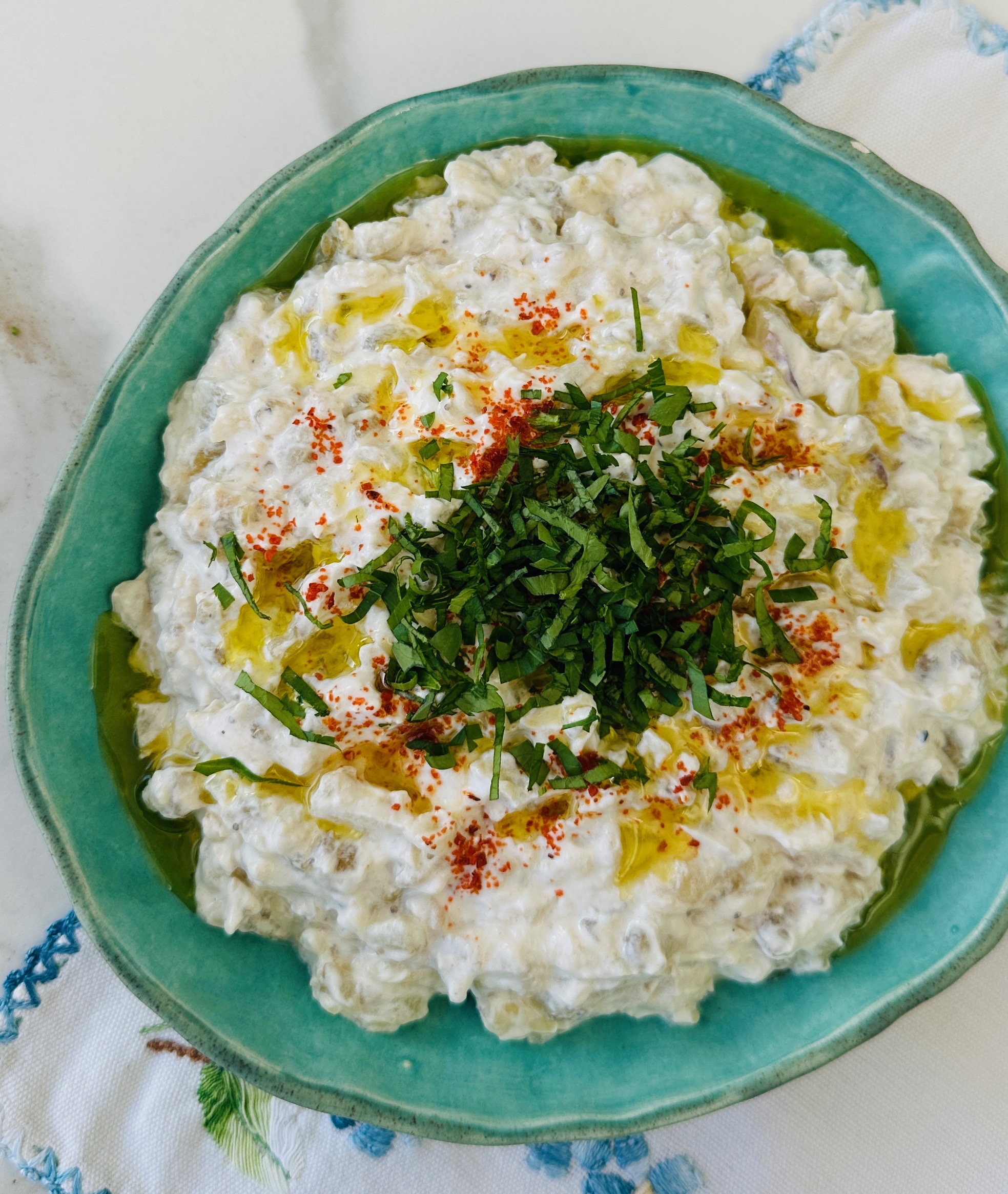 Közlenmiş patlıcanlı, süzme yoğurtlu nefis yaz salatası…