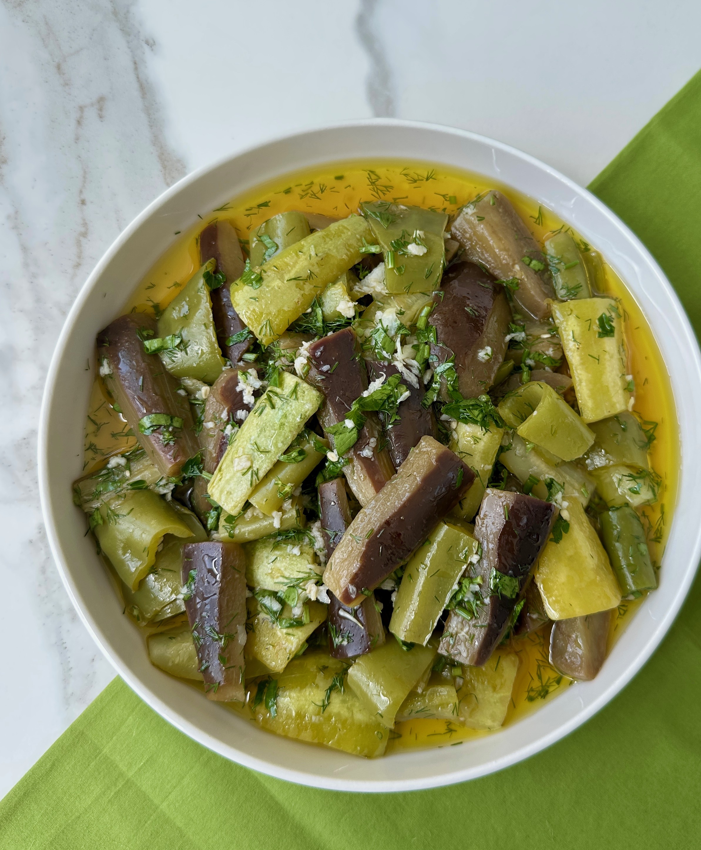 Patlıcan, kabak ve biber ile pratik bir şekilde hazırlayabileceğiniz, iki günde yemeye hazır hale gelen leziz yaz turşusu…
