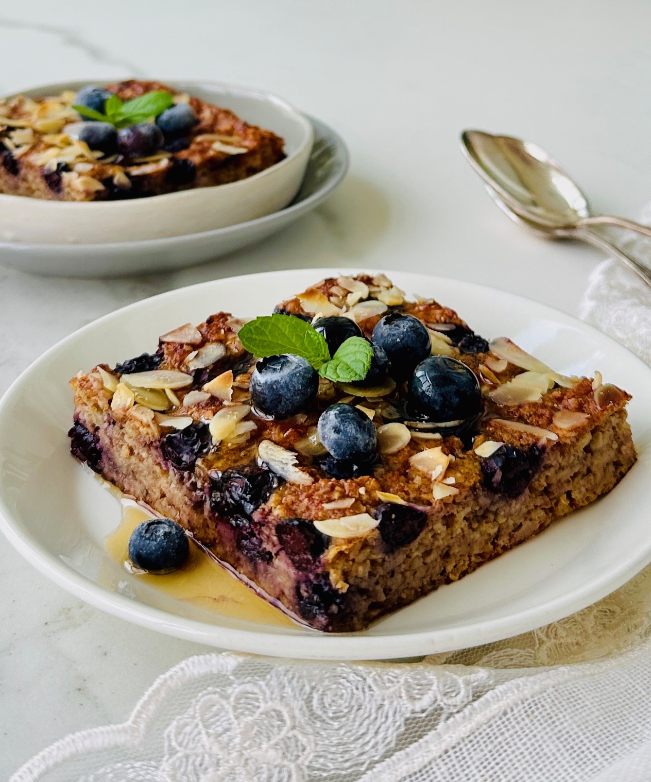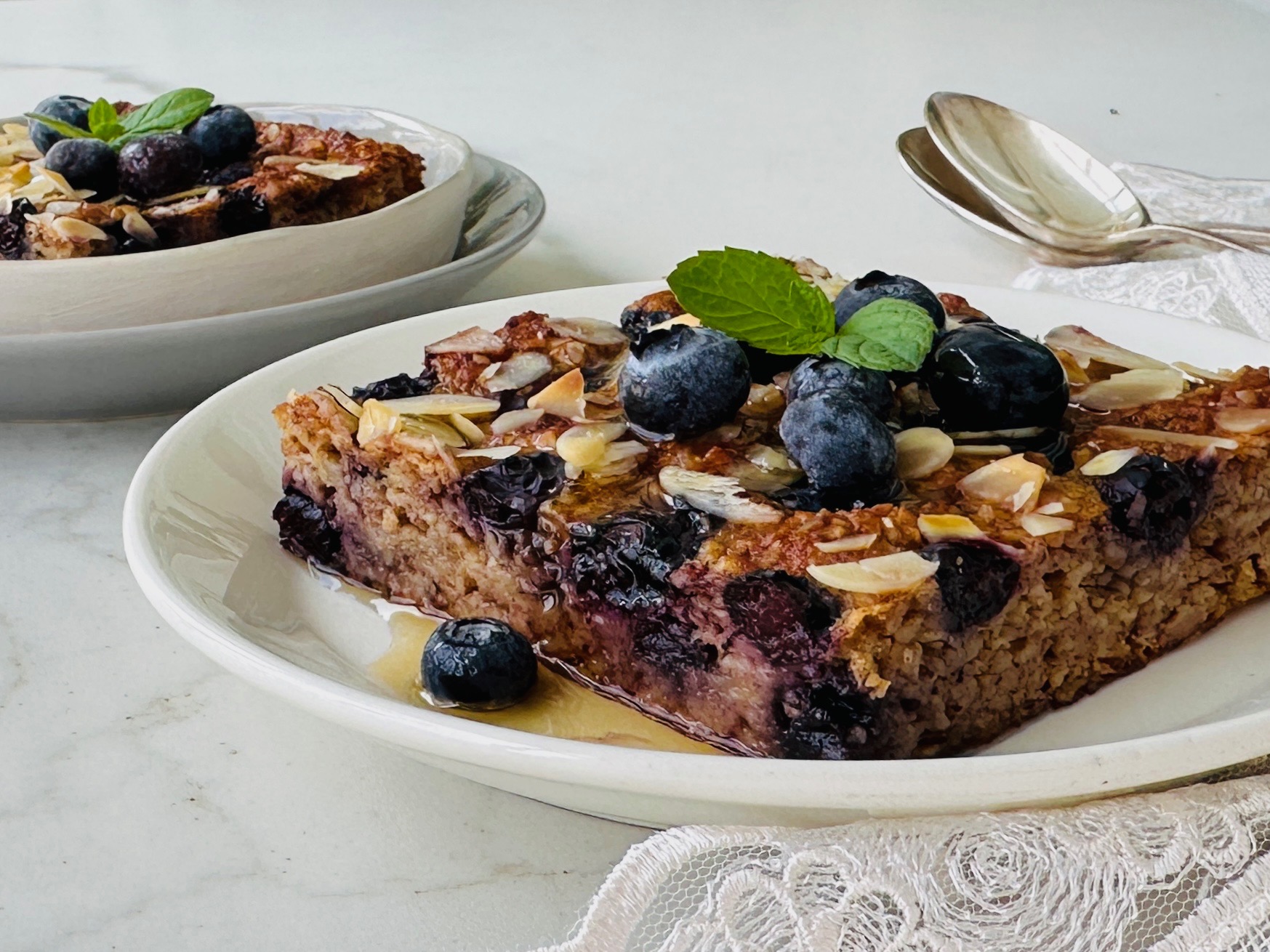 *175 derecede fanlı ayarda önceden ısıtılmış fırında 35 dakika pişirin. Kek ılındıktan sonra dilimleyip dilerseniz üzerlerine mapple şurup veya bal akıtın ve yaban mersini ile süsleyin.